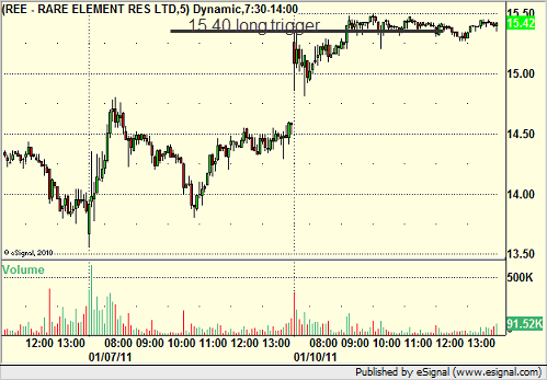 Rich’s REE triggered long (without market support) and doesn’t count either way because it didn’t go even ten cents in either direction: