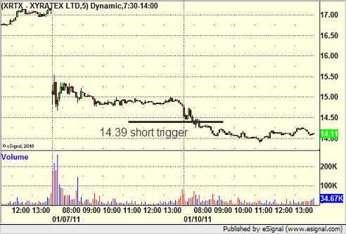 XRTX triggered short (with market support) and worked enough for a partial and held in the money: