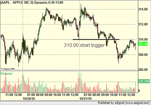 Rich’s AAPL (without market support) triggered short out of the gate, went a point, so worked, but then reversed sharply: