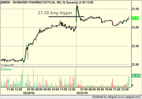 BMRN (without market support because of first five minutes) triggered out of the gate and went enough for a partial, but would have been hard to get: