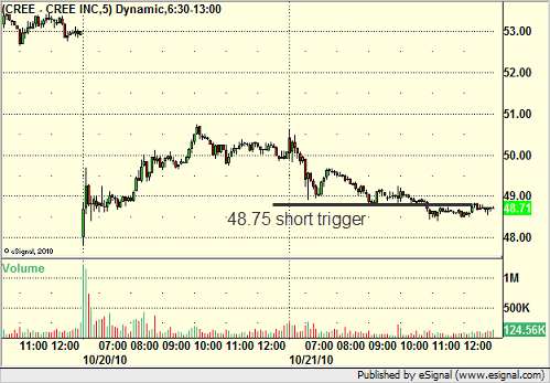 Rich’s CREE (with market support) short, no risk, barely enough for a partial: