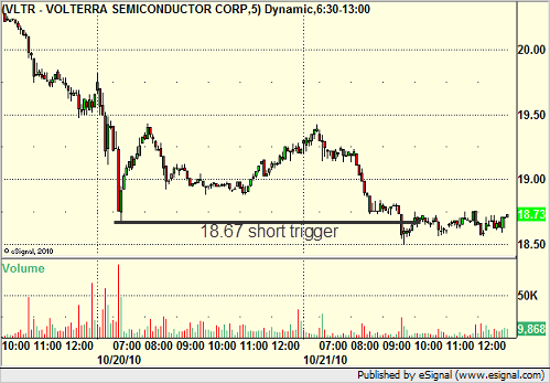 VLTR (with market support) triggered short, a partial, no risk, not much there: